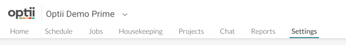Navigate to the main Settings menu in Optii Platform.