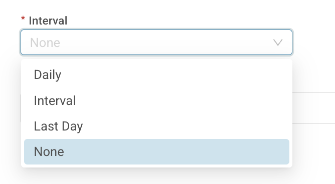 Interval: Defines when the recurring job should be created (e.g., Daily, on a specific Interval, or only on the Last Day).