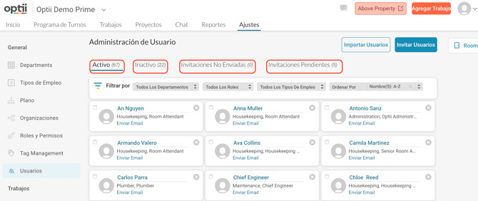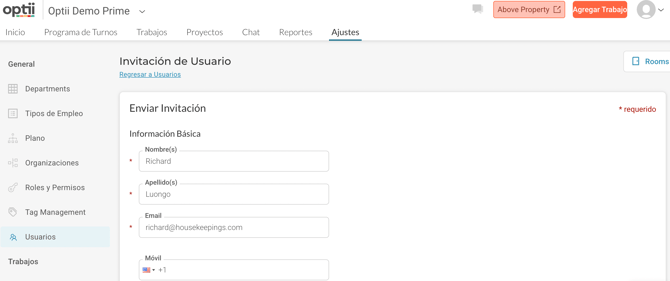 Invita a un Miembro del Equipo de Housekeeping a Optii