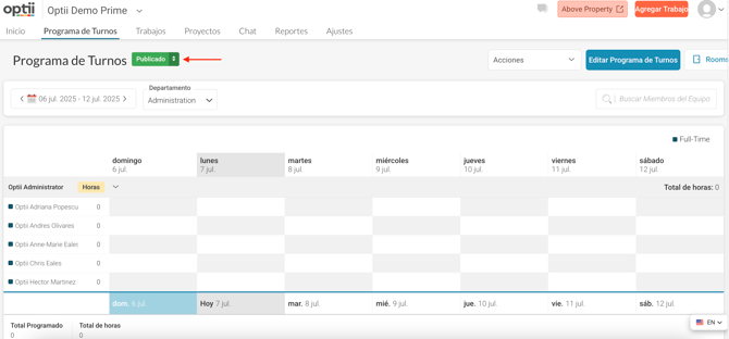 💡 Repite este proceso cada vez que necesites crear un nuevo horario de equipo. Las funciones de Optii hacen que la programación sea eficiente y aseguran que los miembros de tu equipo estén informados de sus horarios de trabajo antes de las asignaciones de habitaciones de limpieza.