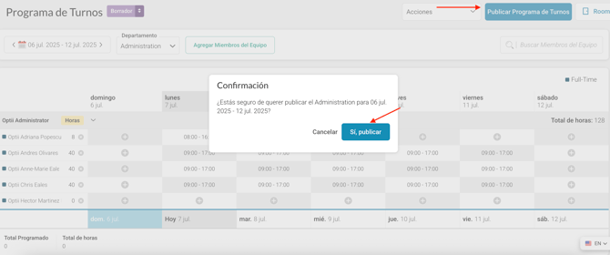 • Una vez que estés satisfecho con el horario, haz clic en "Publicar Horario".