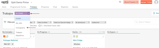 Cambiar a Vista de Cronograma: Cambia tu Vista de Trabajos de "Estado" a "Cronograma".