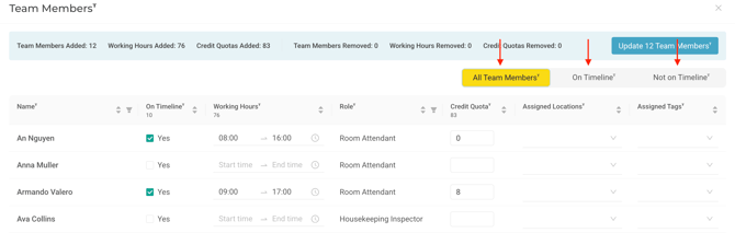 Añadir/Eliminar Miembros del Equipo: Usa el botón "Miembros del Equipo" (esquina superior derecha) para añadir o eliminar personas de la lista.