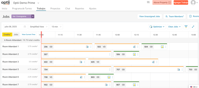 Al final de esta lección, te sentirás completamente seguro y capacitado para asignar y gestionar eficientemente todos tus trabajos de limpieza, optimizar expertamente las asignaciones de tu personal y asegurar constantemente que cada habitación se limpie con los estándares más altos posibles. Te guiaremos a través de cada paso con claridad y precisión, desde la configuración fluida de tus camaristas e inspectores en la intuitiva Cronología de Optii, hasta la asignación inteligente de todos tus trabajos de limpieza —ya sean salidas, estancias u otras tareas— y el seguimiento diligente de su progreso en tiempo real.