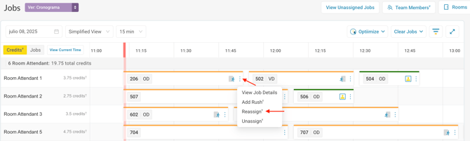 Haz clic en los tres puntos junto a la tarjeta de una habitación para reasignar o desasignar tareas.
