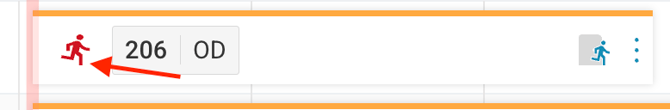 Un icono de persona roja en la tarjeta de trabajo indica una habitación urgente.