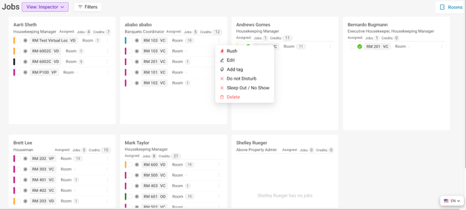 - Quick actions such as marking rooms DND, Rush, Add tags, and more!