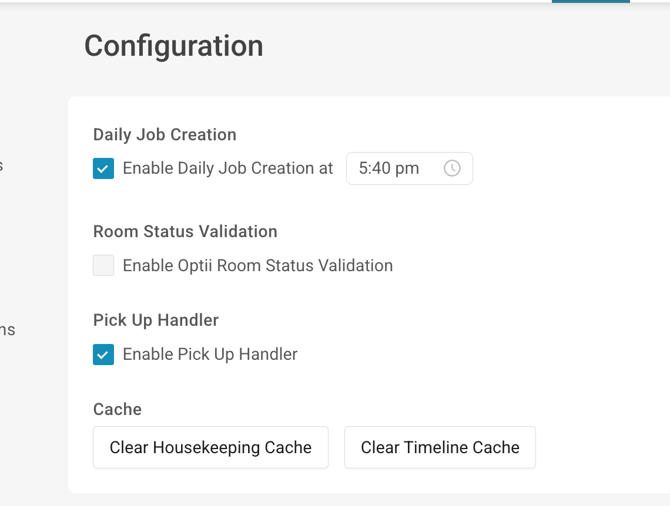 - Existing pick-up logic remains unchanged when enabled, the system will create a check task if the room needs revision, but Optii will allow the status updates as comes from the PMS